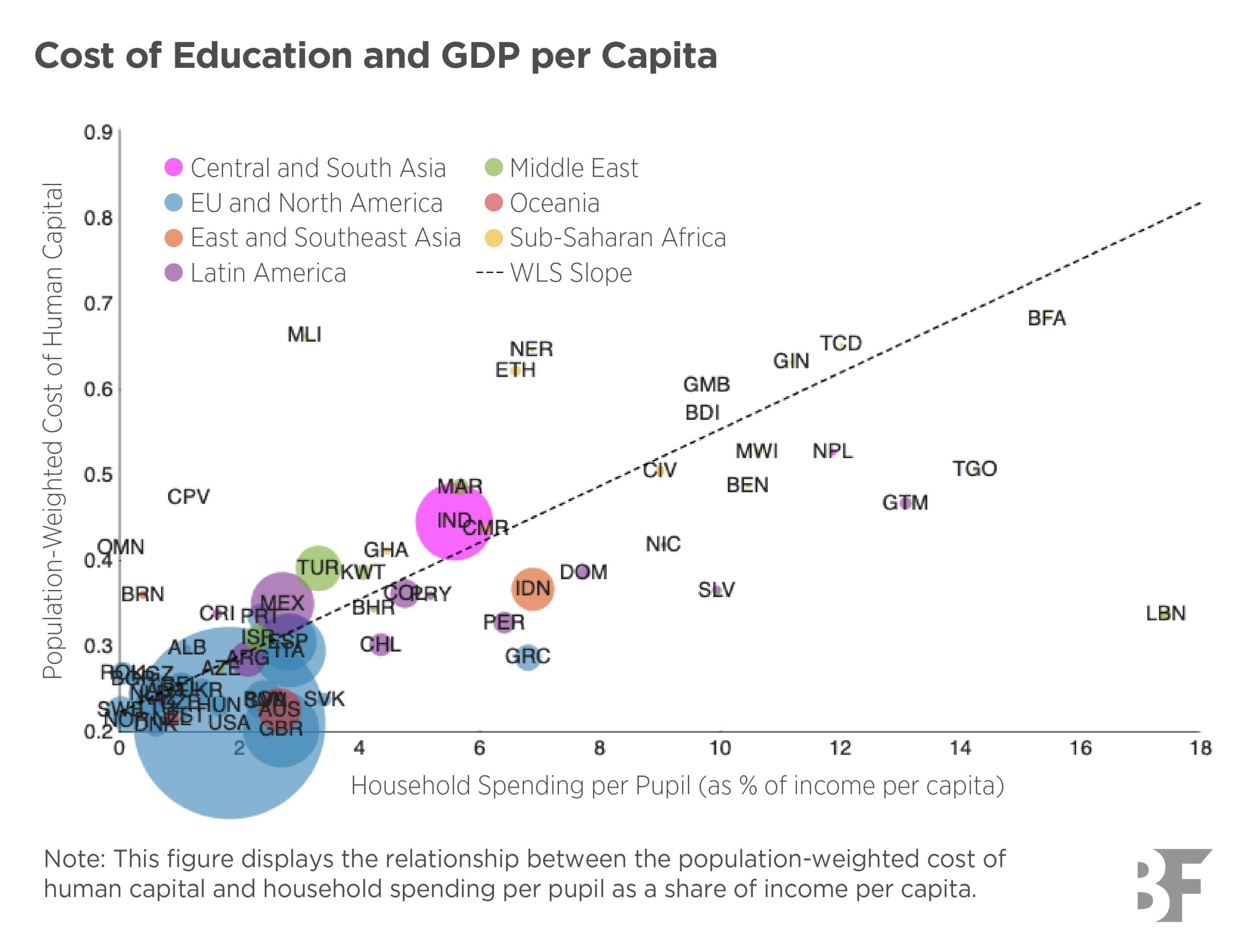 - Reducing education costs by the same percentage across poor regions generates local gains but may cause global losses. The authors examine counterfactual policies that lower the cost of human capital acquisition while maintaining the relative differences between locations within a region. Whether implemented in sub-Saharan Africa, Latin America, or Central and South Asia, the local economy benefits: human capital levels rise, both in the short and the long run. This enhances innovation in human-capital-augmenting productivity, generating positive dynamic effects.